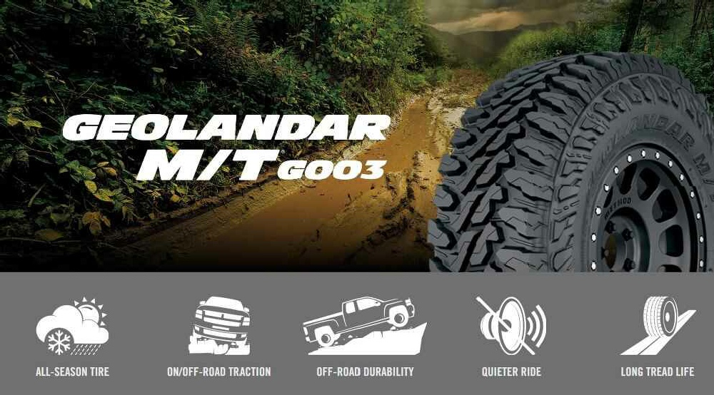 You can't off-road with tires you don't trust. That's why the all-new GEOLANDAR M/T G003™ is engineered with rock-solid, GEO-SHIELD™ technologies from casing to tread. Delivering crushing performance, intimidating looks, and an industry-leading tread life,