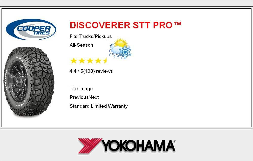 The Discoverer STT PRO™ is the most extreme all-season, off-road tire Cooper® offers to date, providing remarkable off-road performance without sacrificing on-road traction.
